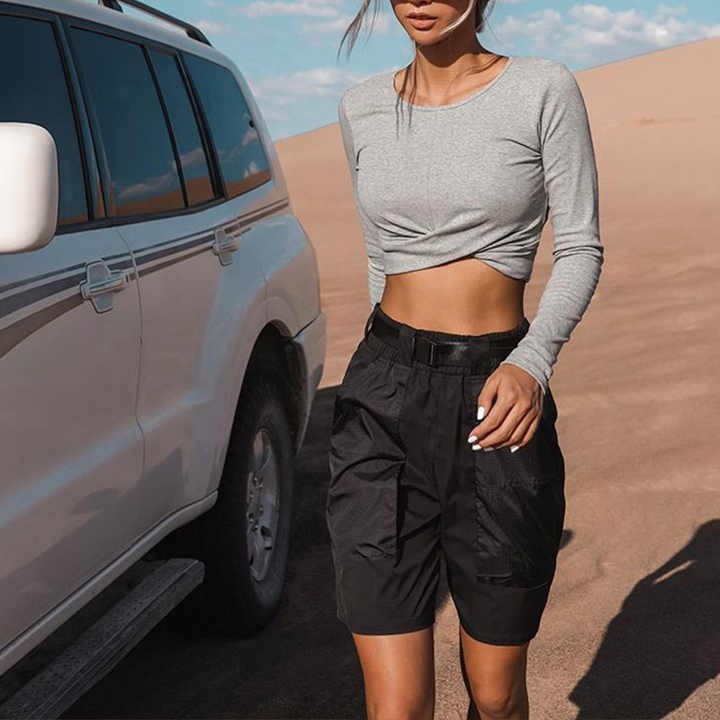 2024 New fashion design sports long sleeve t shirt women custom comfy cotton crop women casual shirts