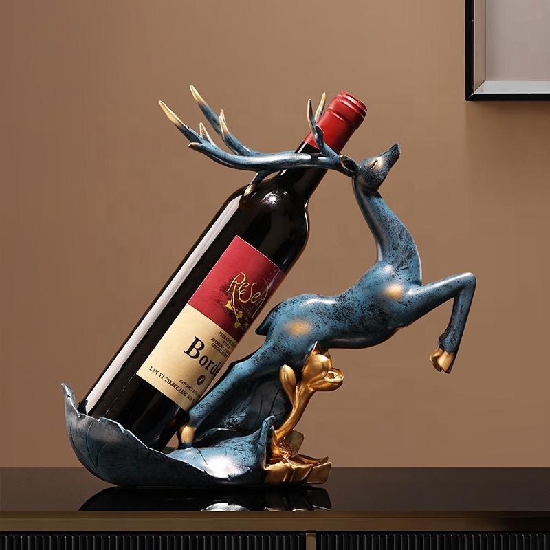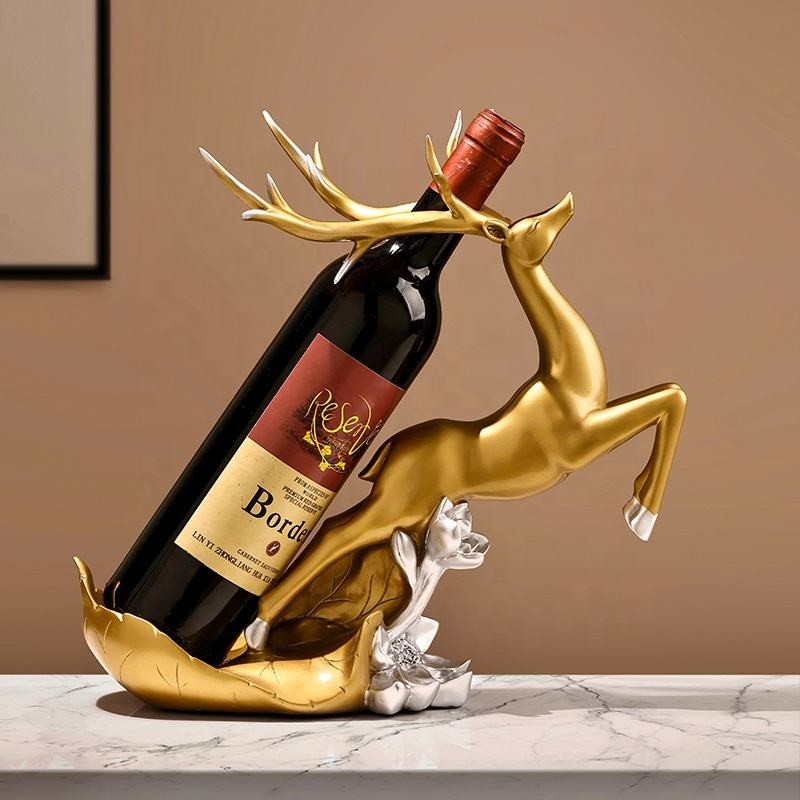 BHM modern home decoration gold ornaments living room lively animal elk wine rack