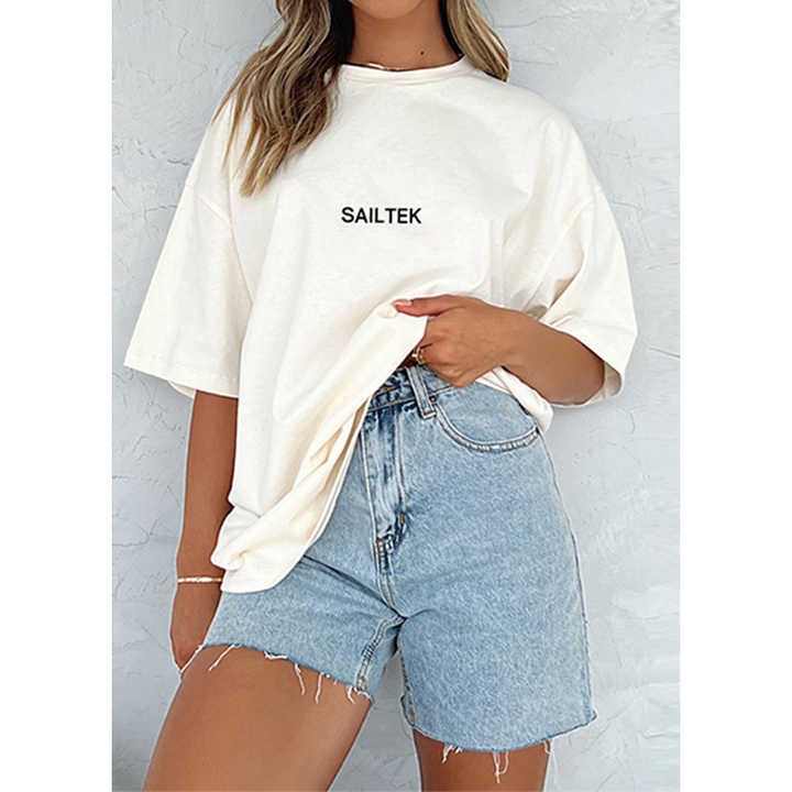 Short sleeve heavy cotton t shirt for women 100% cotton high quality custom printing women's t-shirts